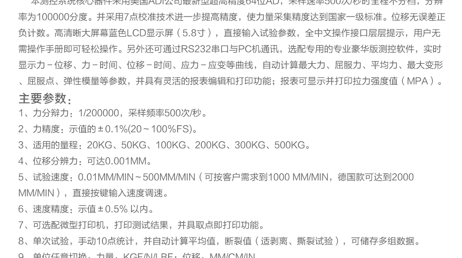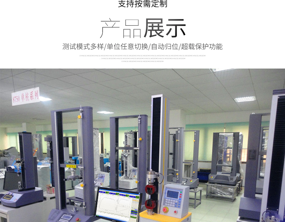 產品型號:JQ-8750 品牌:劍 喬 用途:本系列機廣泛用于各類五金、金屬、塑膠、橡膠料、紙品、包裝、鞋類、皮革、服裝、紡織、建材、絕緣體、電線、電纜、端子等各類材料。測試其拉伸、撕裂、剝離、抗壓、彎曲、抗剪切、定